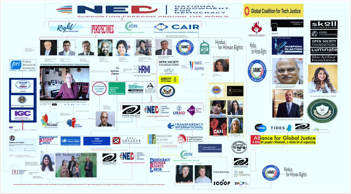 How US Deep State is using Anti Hindu Networks for destabilizing India through the political turmoil in Bangladesh 🧵 1. National Endowment for Democracy has been working to destabilize India since 2016 when it was forced to wind up its operations in India?? 2. But National Endowment for Democracy did not stop there, it went full steam ahead with new windows of the anti India, anti Hindu propaganda?? 3. Do you want to know how Indian National Congress foreign ecosystem is collaborating with Deep state assets in Bangladesh to destabilize India??