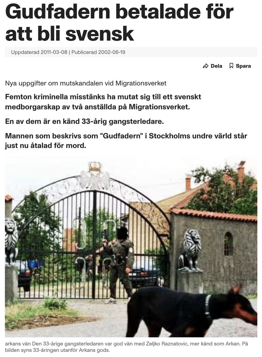 Arkan levde som grovt brottsaktiv (med bankrån som huvudintresse) i Sverige under flera månader, bland annat Göteborg och Stockholm.