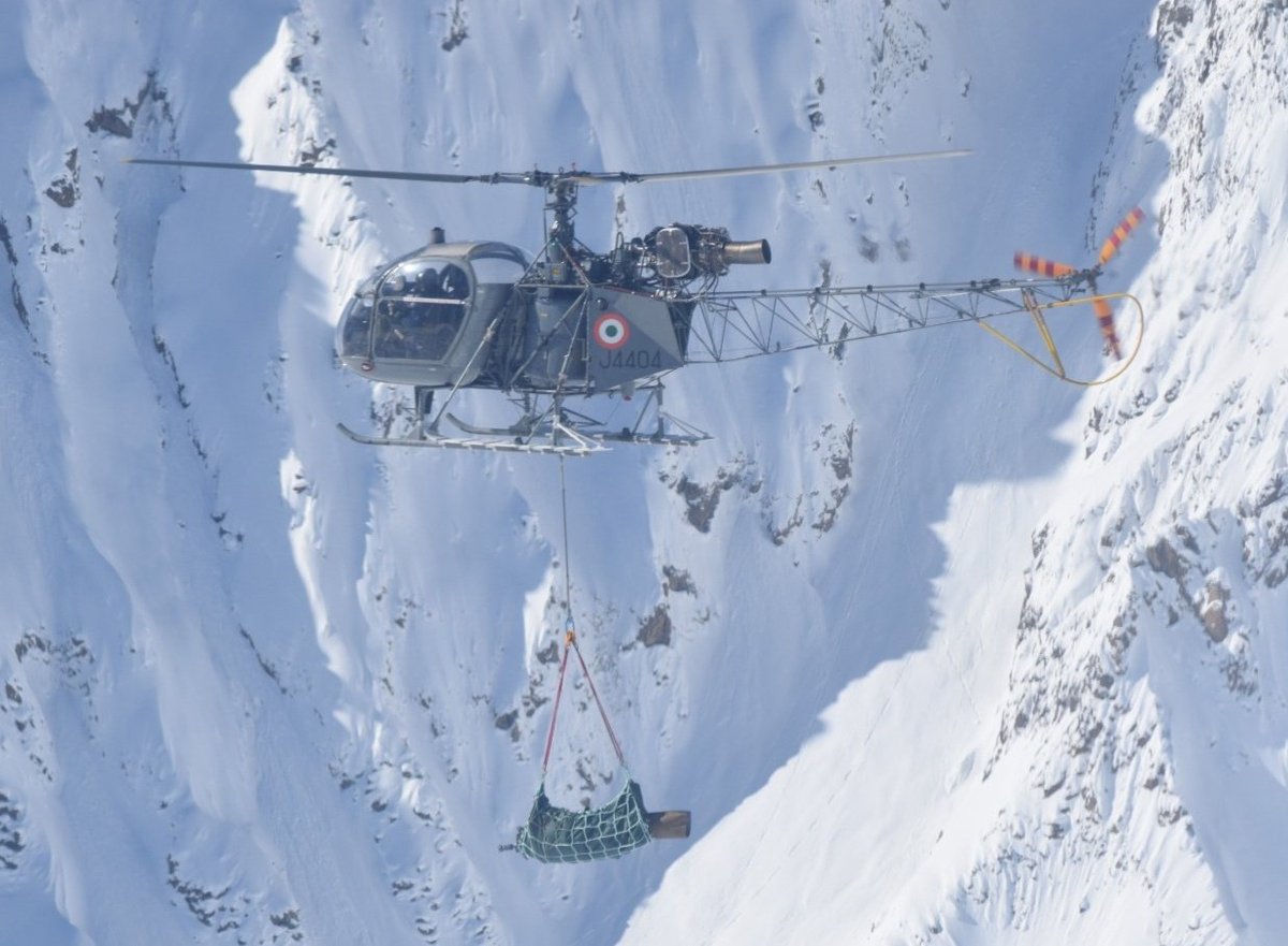 A swift debrief ensued & the remaining 6 Cheetahs got airborne in pairs over intervals of 3 min. While 12 jawans were landed at Blantond La, another was evacuated due to ill-health. The 3rd wave of Cheetahs got airborne from BC at 0945 hrs, bearing tents for the troops.