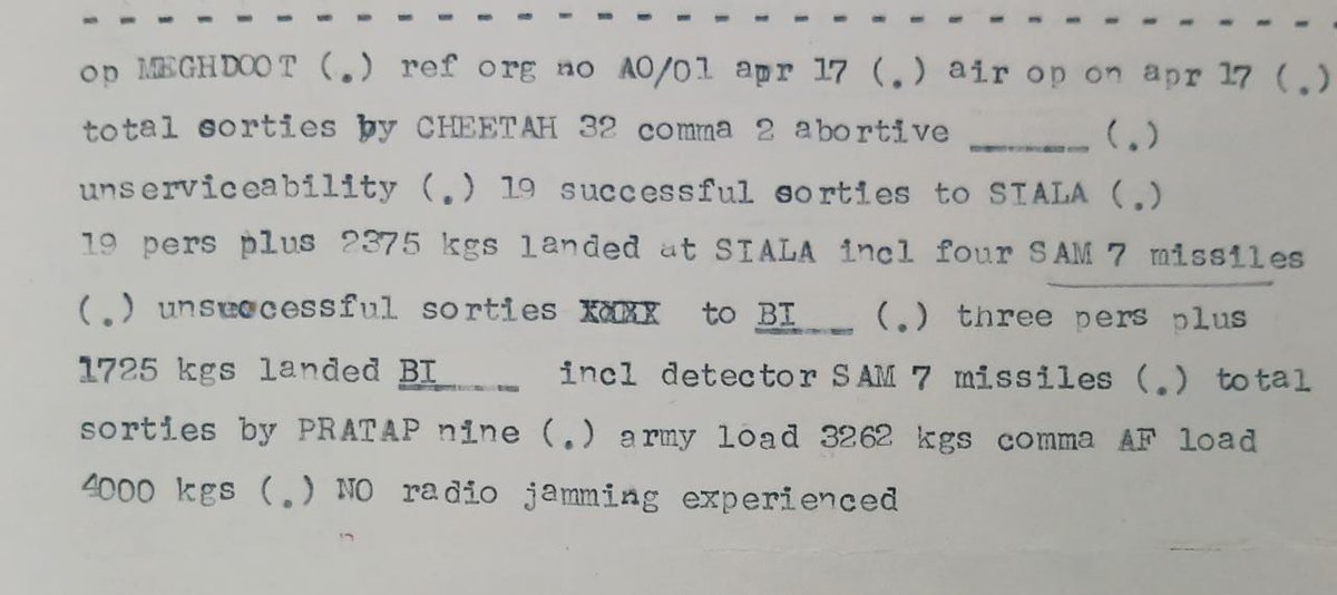 The 4th & final wave of 5 Cheetahs took off at 1120 hrs, carrying the remaining load & troops. Over the day, 19 sorties had landed 30 troops & 1175 kg load by 1210 hrs, when the weather started clamping down. Siala had to wait till 16 Apr, but that's a story for another day.