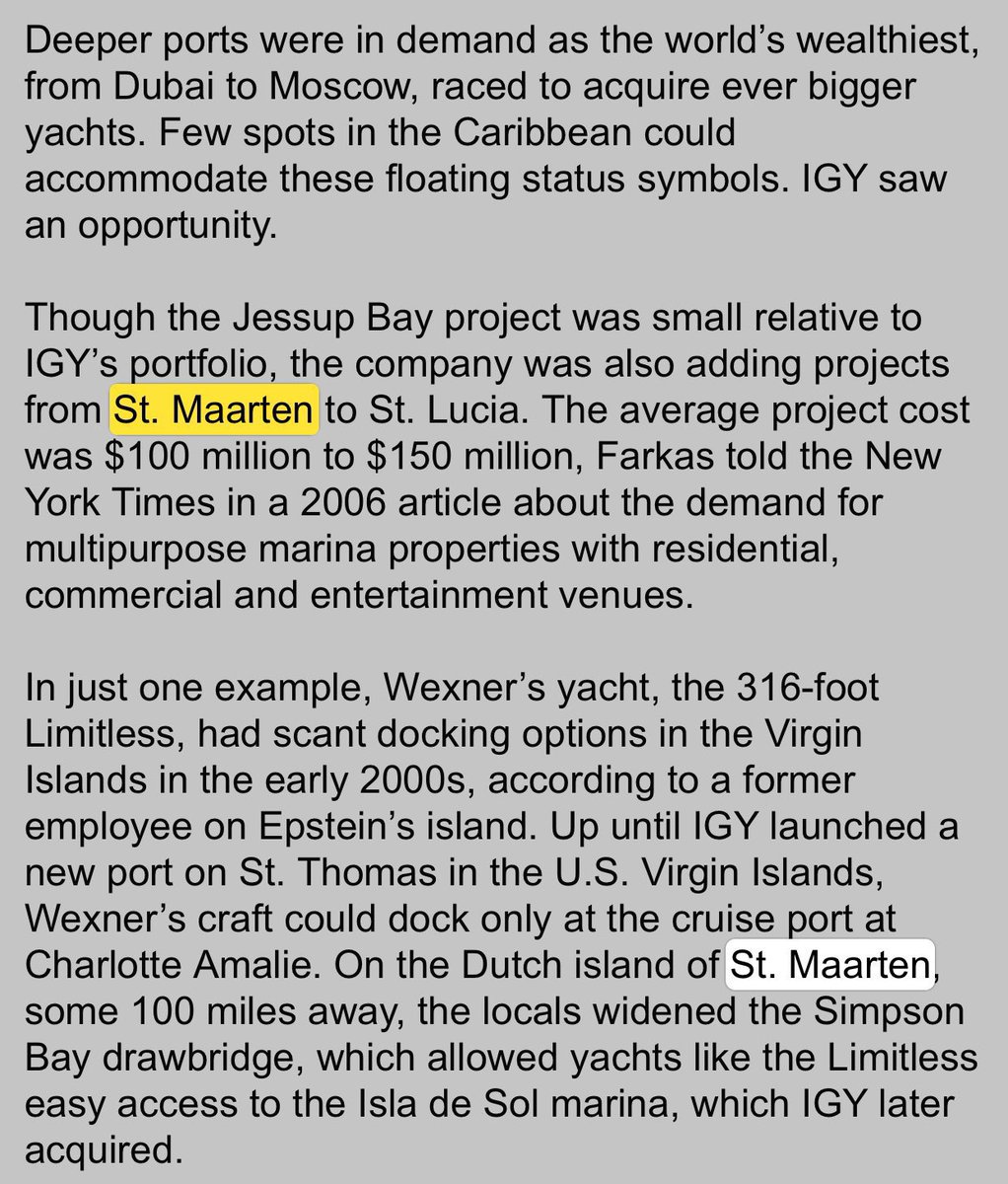 23/7/19 - Bloomberg: “Jeffrey Epstein Port in a Storm.” Uit dit stuk blijkt dat de Nederlandse overheid de haven van Sint-Maarten aan Epstein verkocht NADAT hij eerder was veroordeeld voor misbruik van minderjarigen & sextrafficking. Epsten was eerder key player in het Iran Contra schandaal, wapens voor drugs. Bloomberg het het artikel gescrubt, backup: archive.vn/75rdM