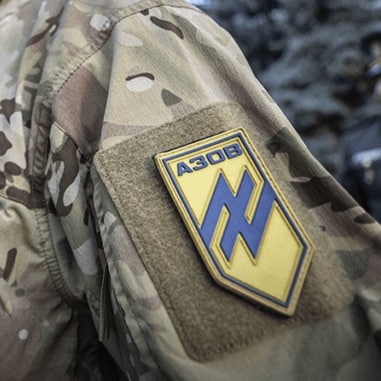 На всіх прапорах та шевронах АЗОВ використовує символ під назвою "Ідея Nації". Це монограма, тобто поєднання двох українських літер I та N.