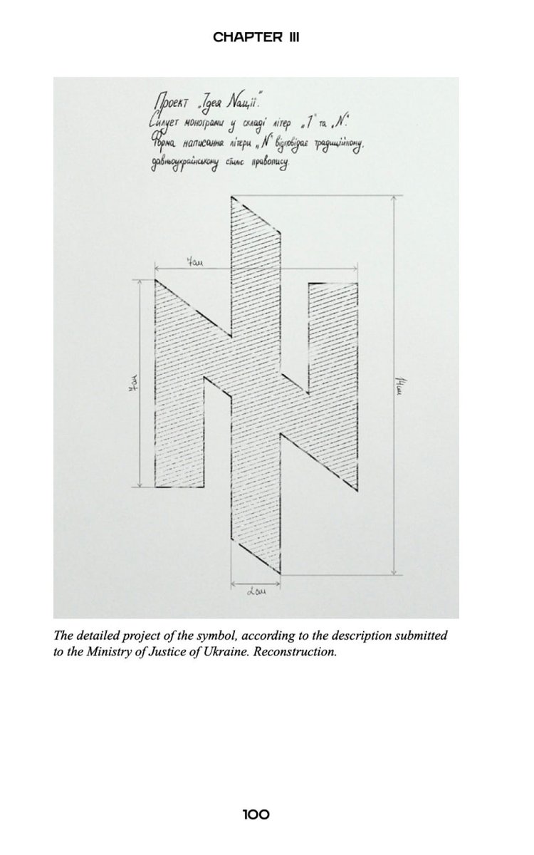 Ідея Nації (символ ꑭ чи ꏢ) є монограмою поєднання двох літер І та N. Але не в сучасному, а в староукраїнському написанні, тобто подібному до латинського накреслення. Такий вигляд літера N мала до XVIII сторіччя. Тобто до реформи російського царя Петра I