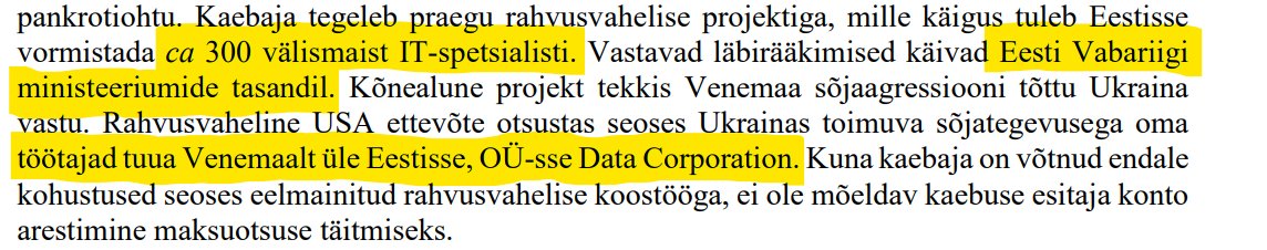 Firma räägib suisa 300 Venemaa IT-töötaja ümberasumisest Eestisse ja palub pangakontot mitte arestida, et saaks äriplaani lõpuni viia...