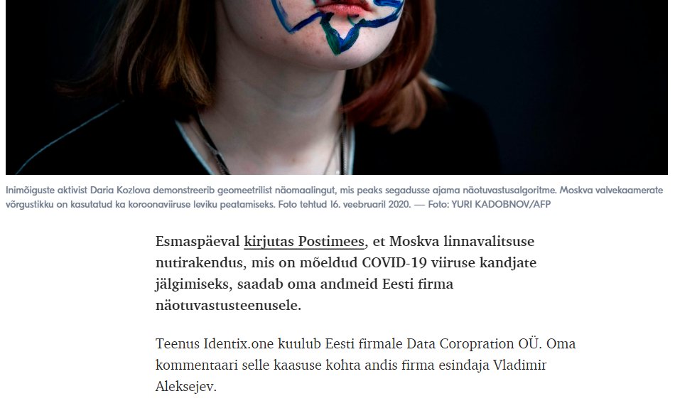 Koroonapandeemia ajal selgus, et Moskva linnavalitsus kasutab Eestis välja töötatud tarkvara inimeste jälgimistarkvara arendamisel.