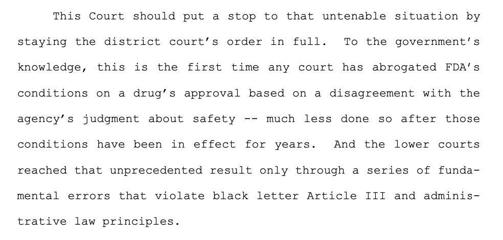 BREAKING: DOJ asks #SCOTUS to immediately halt Kacsmaryk's mifepristone order from going into effect at midnight, to halt his ruling from going into effect during appeals. documentcloud.org/documents/2377…