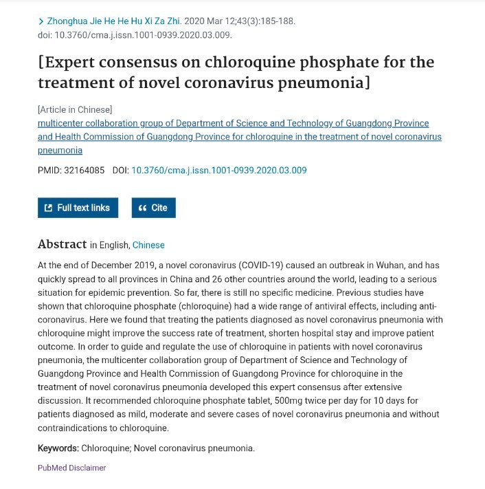 2. Le résultat (pas d'effet antiviral) sur des malades hospitalisés à un stade sévère ne préjuge pas de l'effet sur une infection encore légère, en début de phase (cf consensus chinois sur CQ).