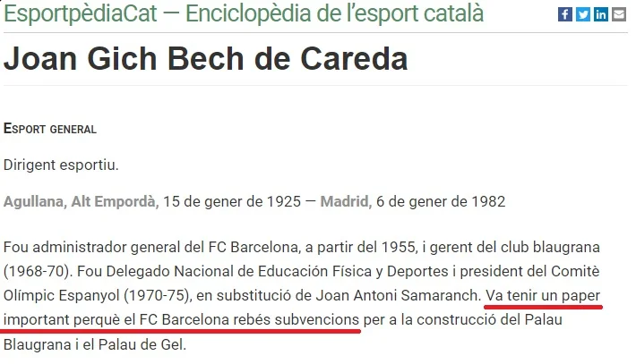 1970 - Joan Gich, político de la Falange y directivo del Barça entre 1955 y 1969, fue nombrado Delegado Nacional de Deportes y Educación Física en sustitución de Samaranch. El antiguo directivo y secretario general del Barça, ocupó también un alto cargo en TVE.