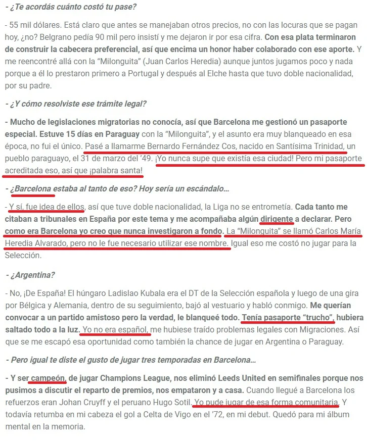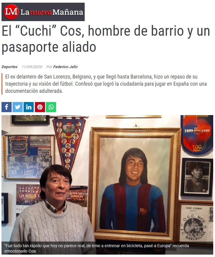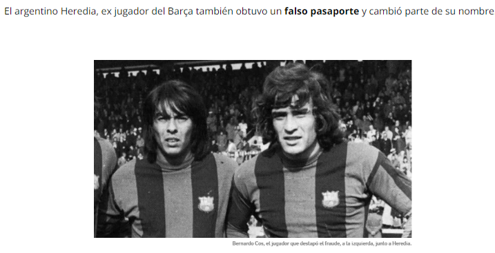1972 - El delantero azulgrana Bernardo Cos, pudo jugar como "comunitario" durante varias temporadas en el conjunto catalán gracias a un falso pasaporte obtenido con la complicidad del club y del régimen.