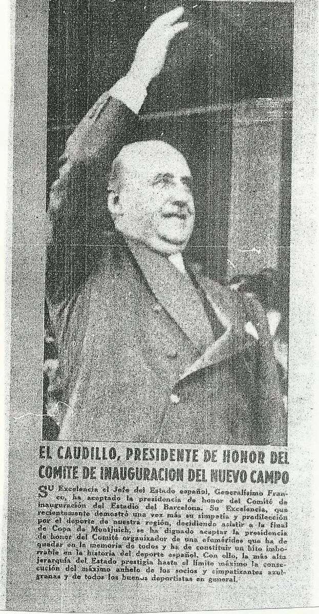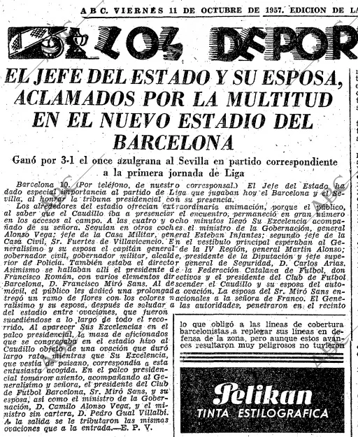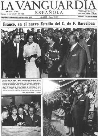 1957- El 10 de Octubre, Franco visitó el nuevo Camp Nou y fue ovacionado por el estadio puesto en pie.