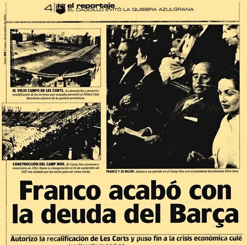 Los terrenos de Les Corts fueron vendidos al estado y Franco acabo con la deuda del Barça.