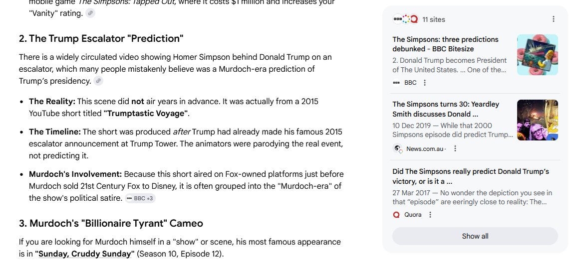 "There is a widely circulated video showing Homer Simpson behind Donald Trump on an escalator, which many people mistakenly believe was a Murdoch-era prediction of Trump’s presidency ..