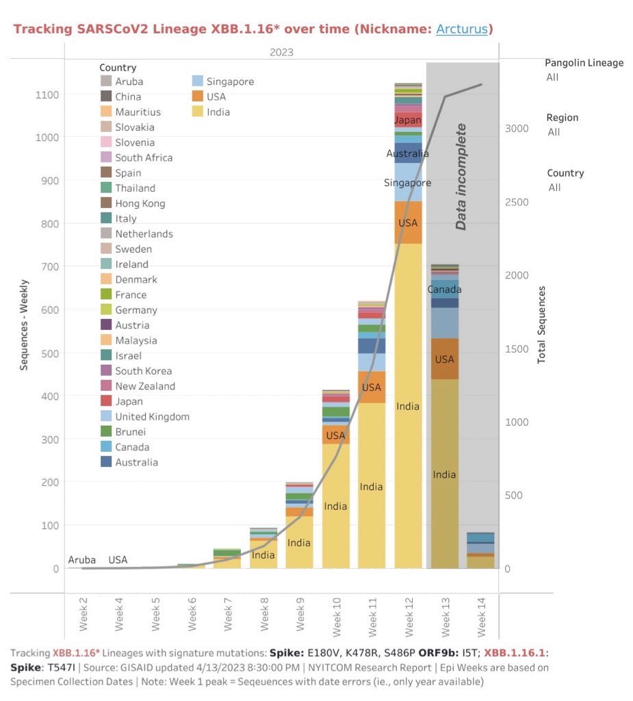 A study from Japan has just been released showing that XBB.1.16 (‘Arcturus’) has the potential to spread ~30% more efficiently than its parental variant XBB.1 and ~20% more than XBB.1.5 (the ‘Kraken’).