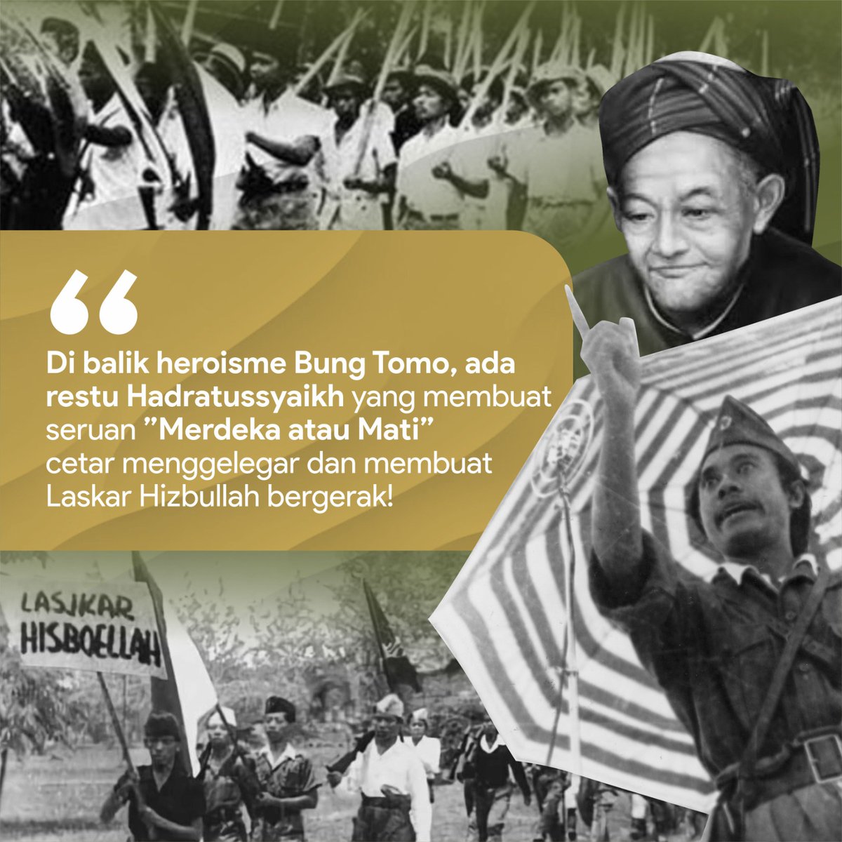 Selanjutnya, dibalik heroisme Bung Tomo dengan seruan "Merdeka tau Mati" ada Restu dari Hadrotussyaikh KH. Hasyim Asy'ari yang membuat Laskar Hasbullah bergerak! #JihadSantri10November