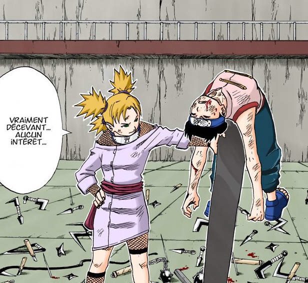 L’humiliation si c’était une image. Vraiment Tenten, c’est trop grave comment tu peux être nul comme ça. Elle possède l’équivalent d’une base militaire américaine dans les poches mais elle arrive pas à réaliser des dégâts. NUL À CHIER.