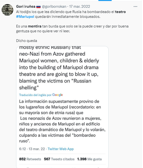 2⃣4⃣🏛️ Por supuesto los troles prorrusos corrieron rápidos a decir que era mentira el bombardeo del teatro.