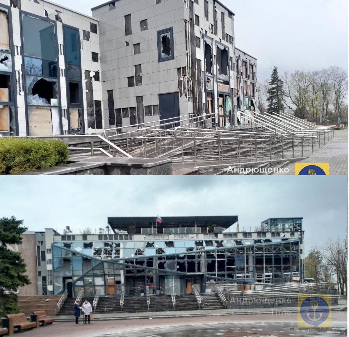 @chequinfredfa 4⃣2⃣🏛️ Así está hoy el Multicentro de #Mariupol (construcción 2019), una oficina del gobierno local que incluía el centro de prestación de servicios administrativos, la administración de fondos de pensiones, ...
