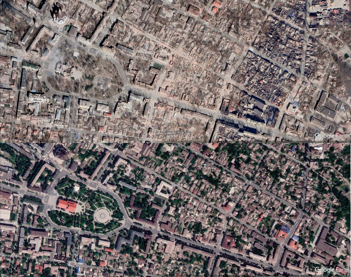 5⃣3⃣🏛️ Imágenes satélite de antes/después del paso de Rusia por Mariupol