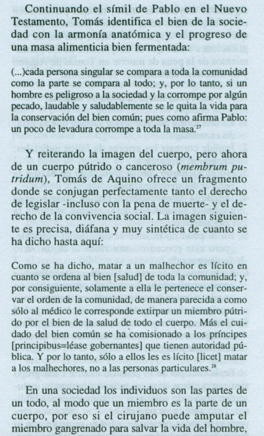 «Si un hombre es peligroso para la sociedad, laudable y saludablemente se le quita la vida para la conservación del bien común».