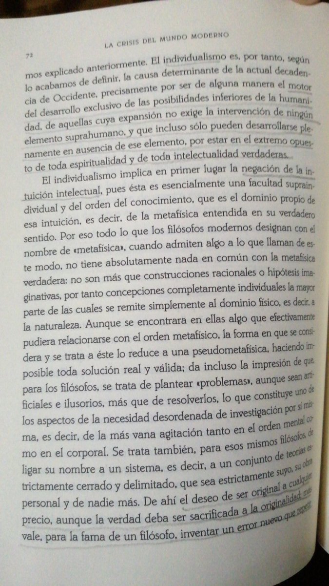 «Desaparecidas las ciencias tradicionales de la Edad Media, no iban a existir más que la ciencia y la filosofía profanas, es decir, la limitación del conocimiento a su nivel más bajo, el estudio analítico y empírico de hechos que no se relacionan con ningún principio».