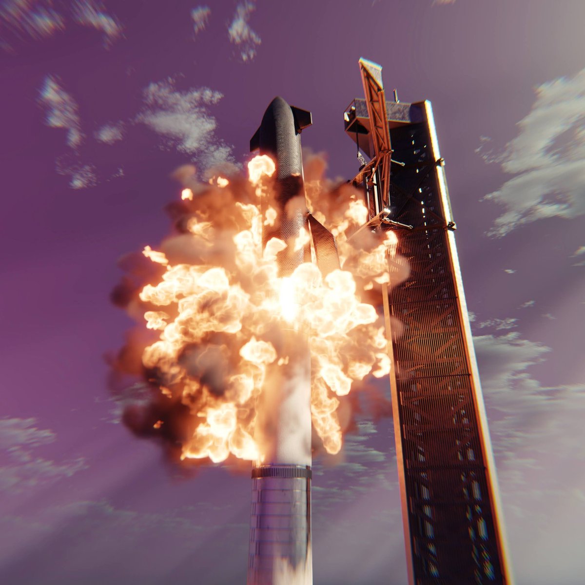 У Super Heavy уникальная и очень сложная конфигурация из 33 двигателей Raptor 2. Каждый двигатель по отдельности само по себе произведение искусства, который ещё и очень сложно запустить (но это отдельная тема). А зажечь на полную сразу 33 двигателя — это рекорд в целом