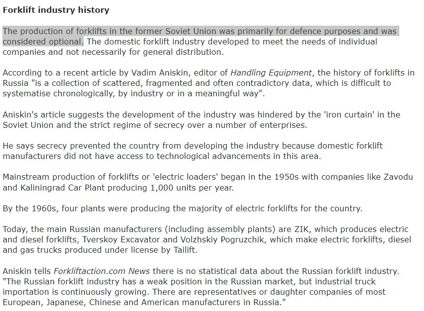 Thanks to @svillsss and a correspondent of mine, we all have an answer to the mystery of a forklift in a 1988 Soviet logistical document, given the near total dearth of domestic Soviet production of them for the Red Army.