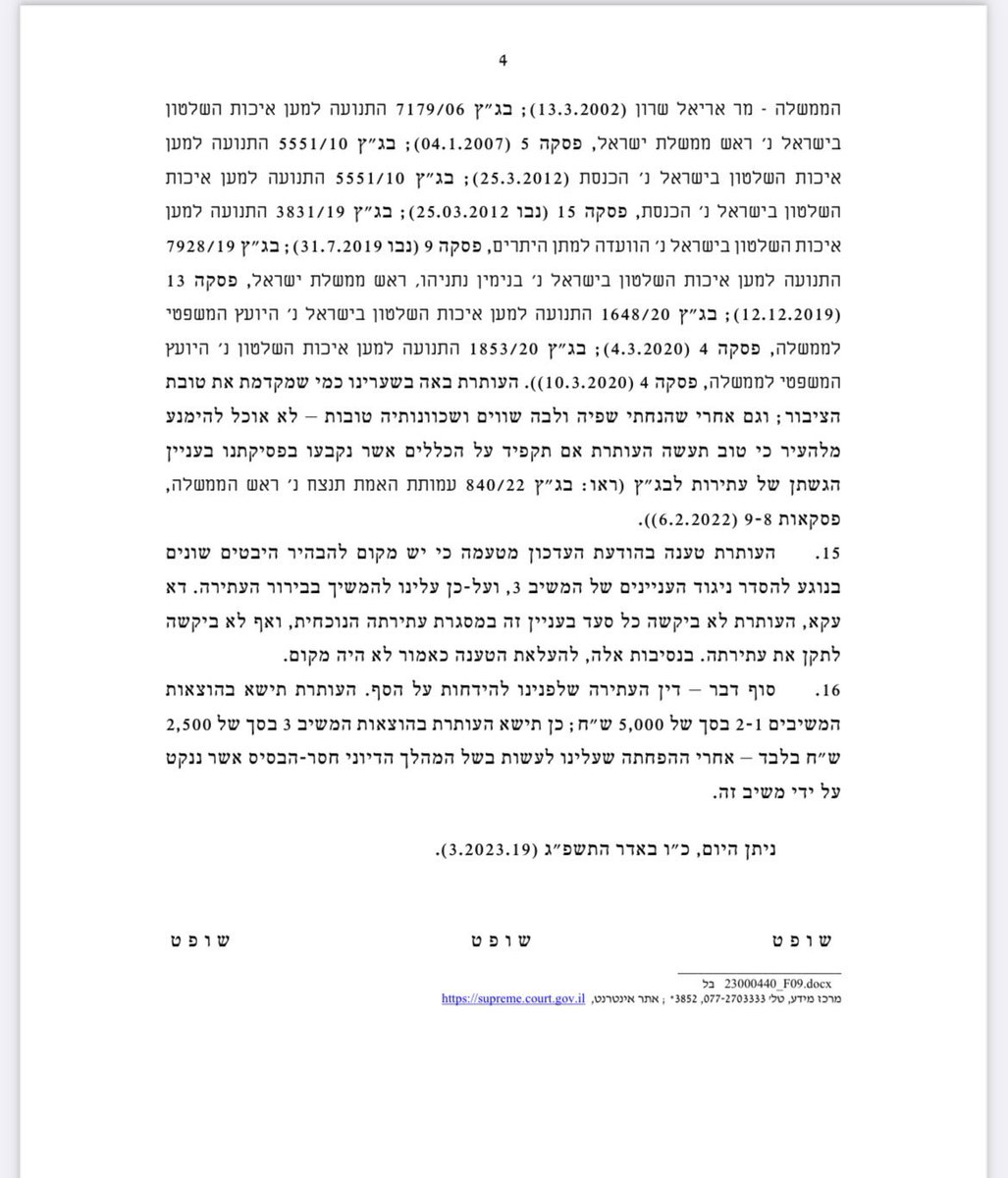 בתגובה לכך, נתניהו ביקש מבג"ץ לקבוע כי תוספת זו, ביחס לרפורמה, אינה מחייבת אותו – אך בג"ץ דחה *מפורשות* בקשה זו👇. >>