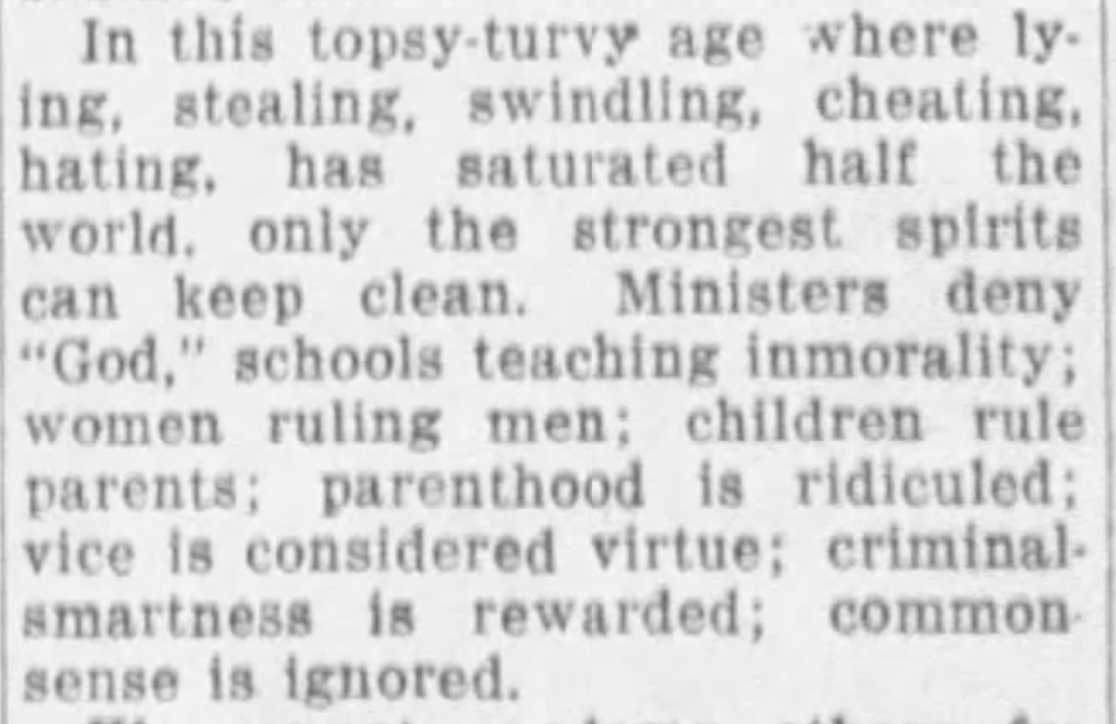 If you enjoy these threads, you might also enjoy pledging for a copy of my new book, The Press Gallery. Dozens of themes, 500+ clippings with fun essays about kids these days, why everything bad is the fault of bicycles and jazz, and more!
