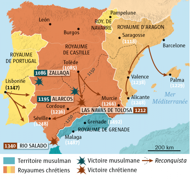 La Reconquista n’est pas une guerre de libération nationale. Il s’agit d’une entreprise qui s’étire sur 4 siècles, essentiellement prise en charge par des seigneurs, puis par les monarchies ibériques. La population y participe bien sûr (impôts+milices urbaines)