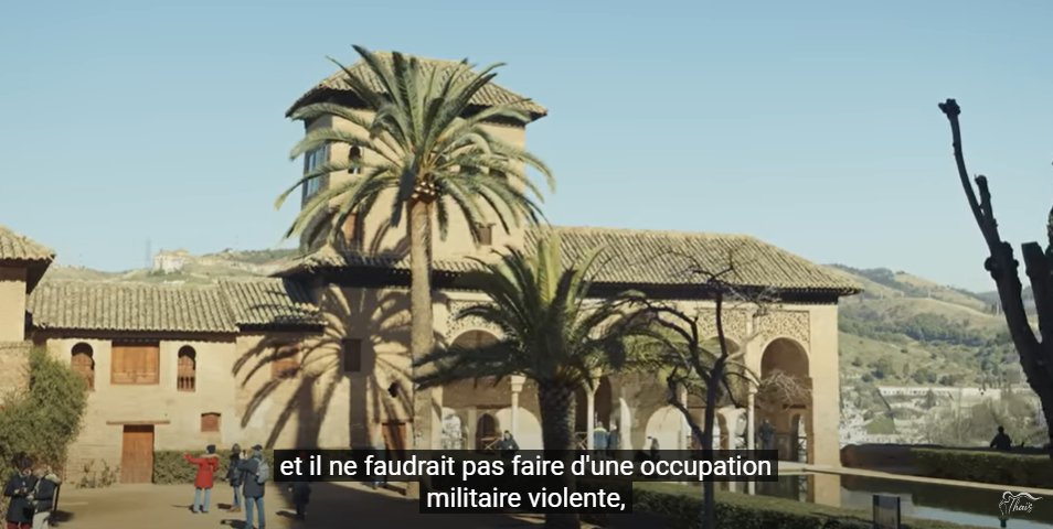 7’ « Il y a une certaine beauté en ses lieux... mais il ne faut pas oublier qu’elle a été permise par le travail des esclaves chrétiens espagnols qui les ont construits ». Alors là c’est une grossière erreur (ou un énorme mensonge, vous déciderez)