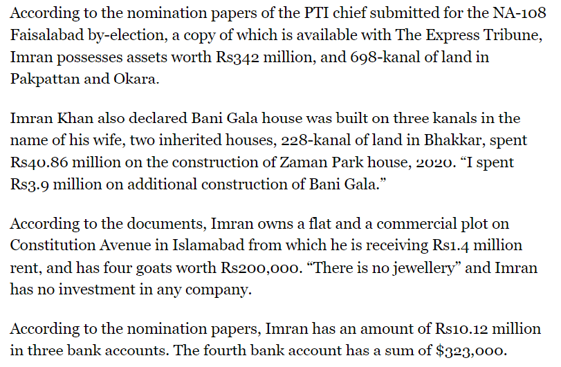 Last year Imran Khan declared assets worth 342 million rupees.