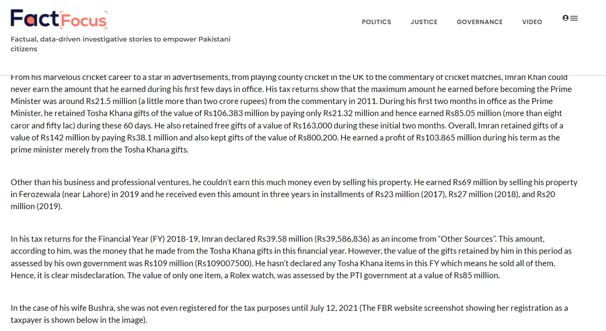 Here are all the numbers on Tosha Khana. Imran Khan made more money retaining gifts from the Tosha Khana in 3 years than he had in his entire life combined.