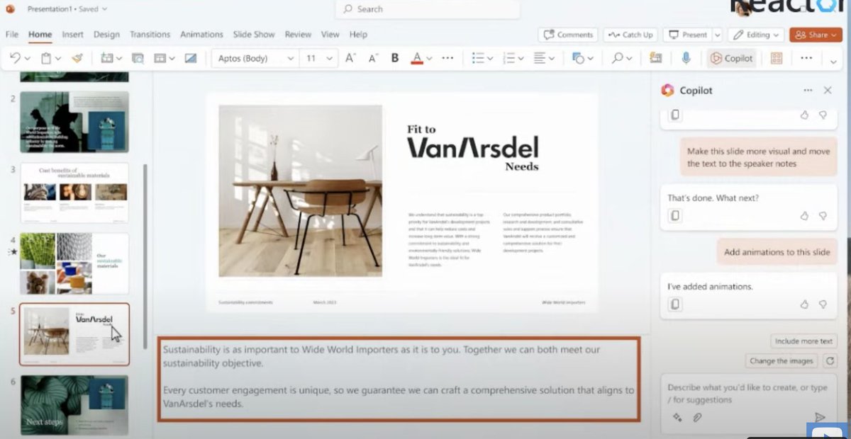6/ After you finish that word doc, you can ask Copilot to create a powerpoint slide for you, complete with speaker notes, images and animations in the style you want!