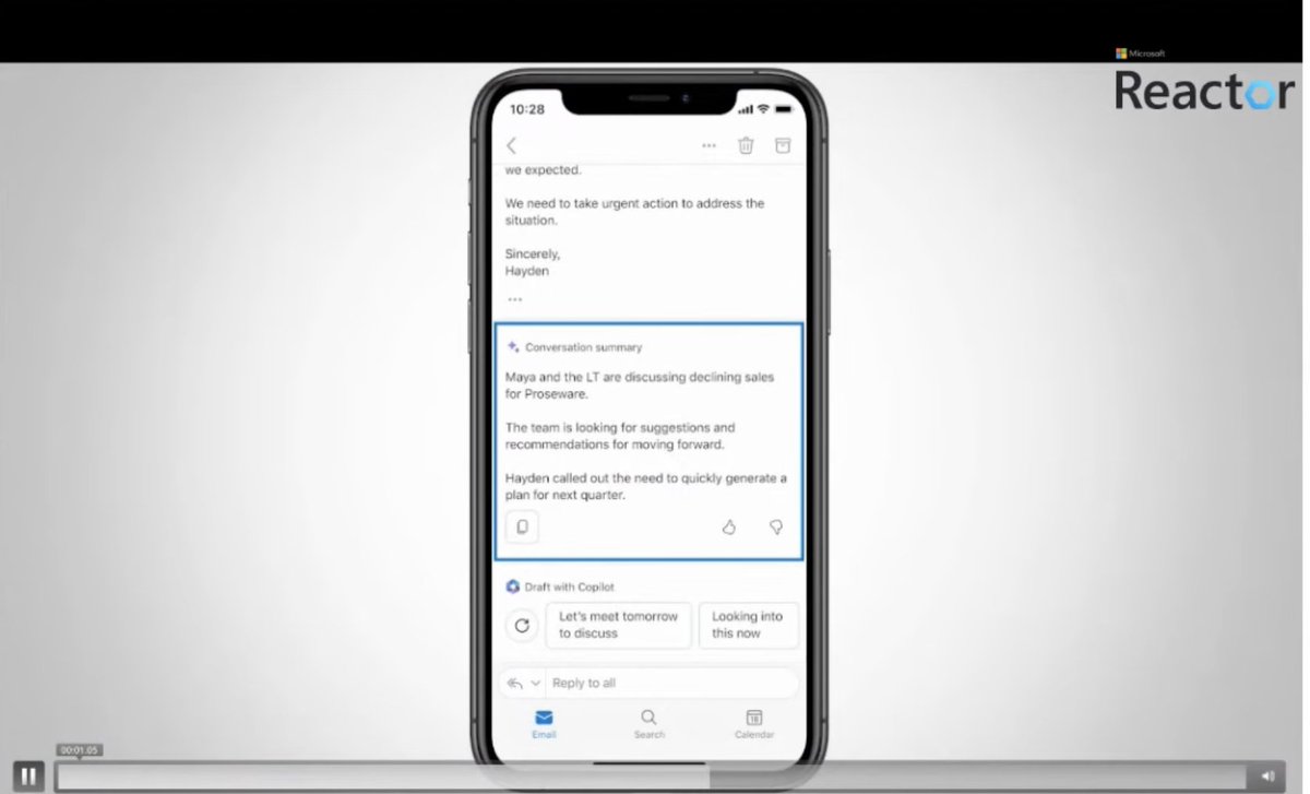 9/ Outlook now integrates Copilot, both desktop and in this version of mobile. It can summarize long email threads, and help you compose appropriate emails. It will analyze your inbox and sort for you.