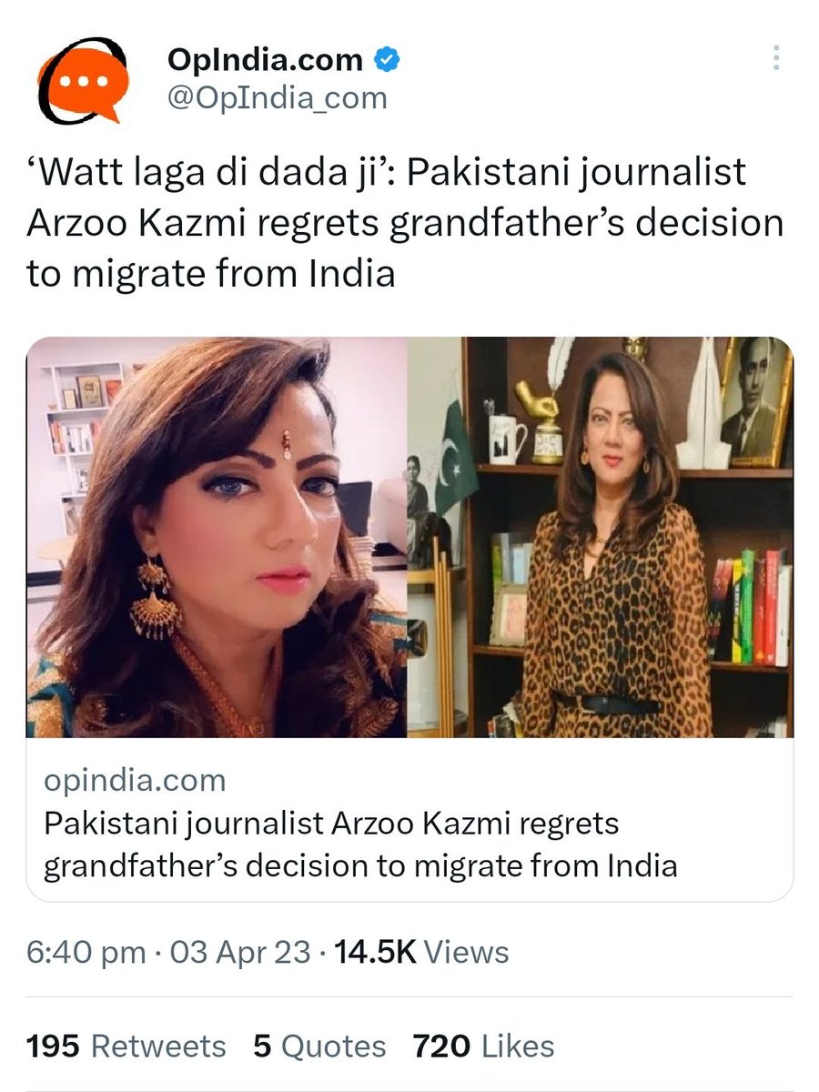 New found love for Pakistan Journalist @Arzookazmi30 baaji by Right wing propaganda website and it's editor @UnSubtleDesi