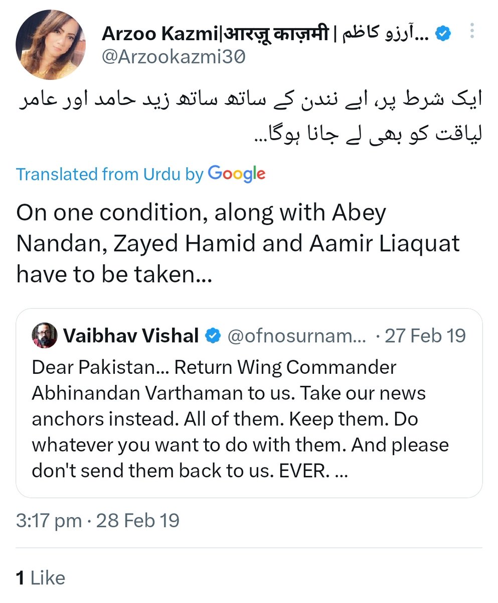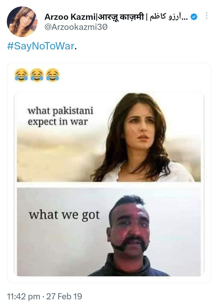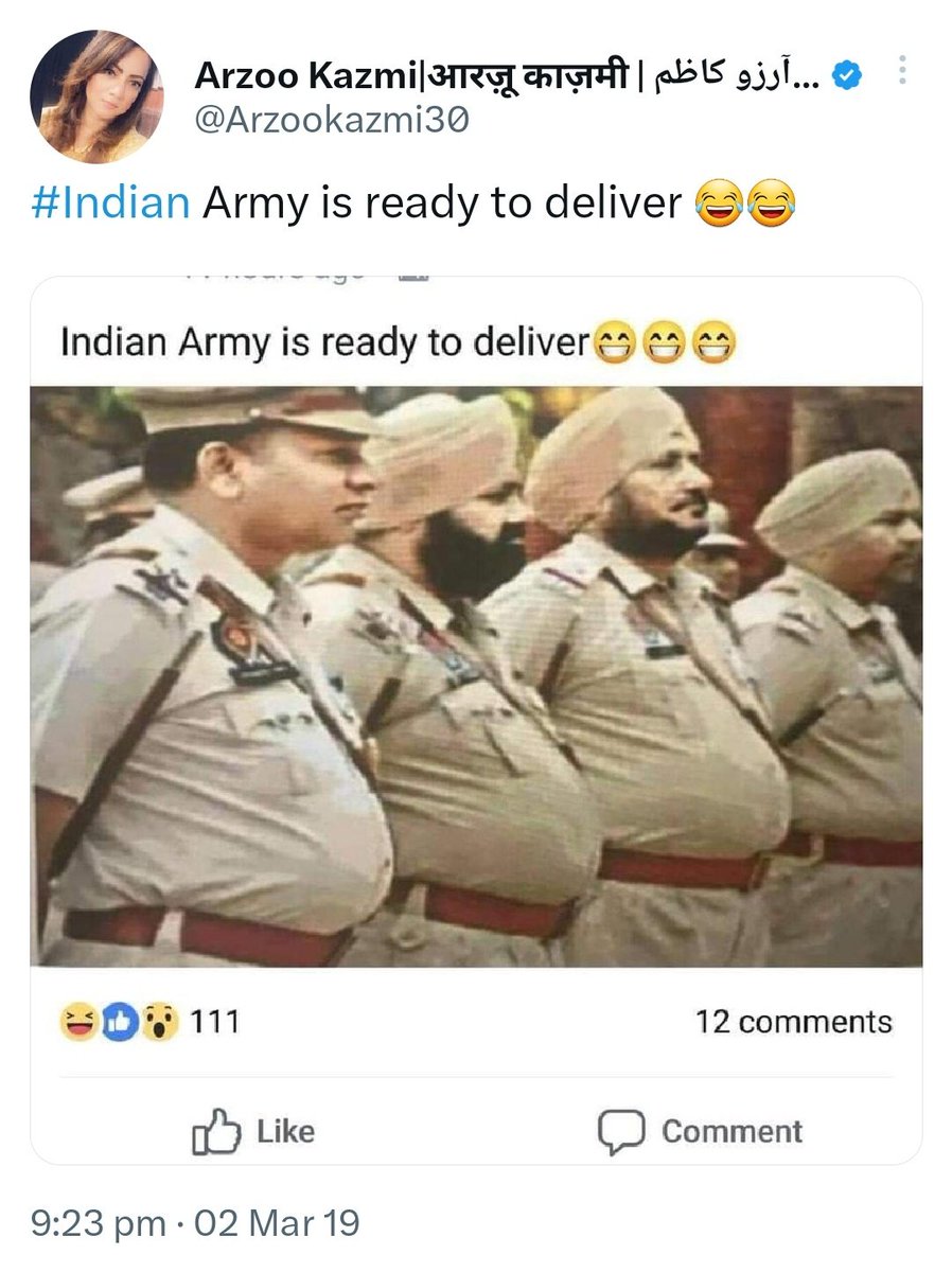 A few of her tweets from 2019 mocking our forces when wing-commander Abhinandan was captured in her country.