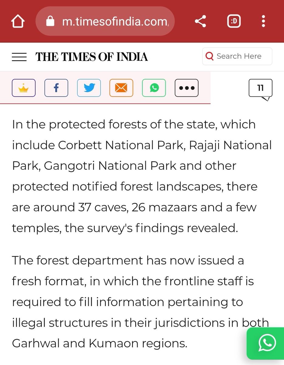 “According to a preliminary survey conducted by the state's forest department, there are at least 300 unauthorised temples & ashrams, over 35 illegal mazaars & mosques as well as 2 gurudwaras built inside state's forests in violations of rules”. C'C @sudhirchaudhary#MazarJihad?