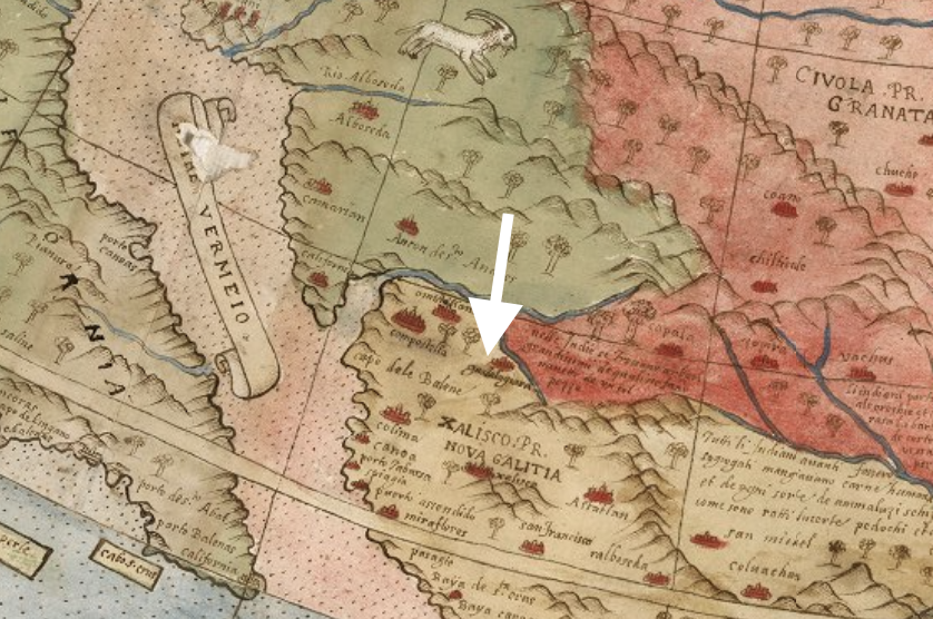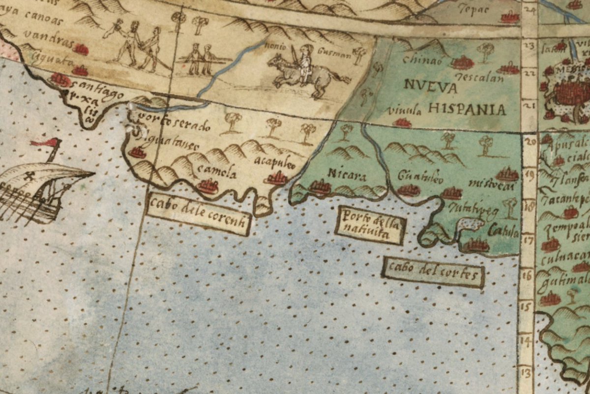 En el #mapa también podemos identificar Colima, Acaponeta, Guatulco (sic) y Acapulco por el lado del Pacífico.