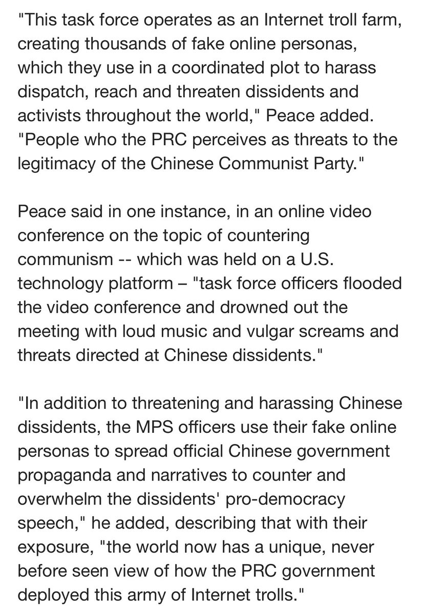 The charges announced today reveal new details about China’s use of fake online personas to spread Chinese govt propaganda, carry out coordinated harassment, and threaten dissidents & activists around the world, including in NYC. foxnews.com/politics/two-n…