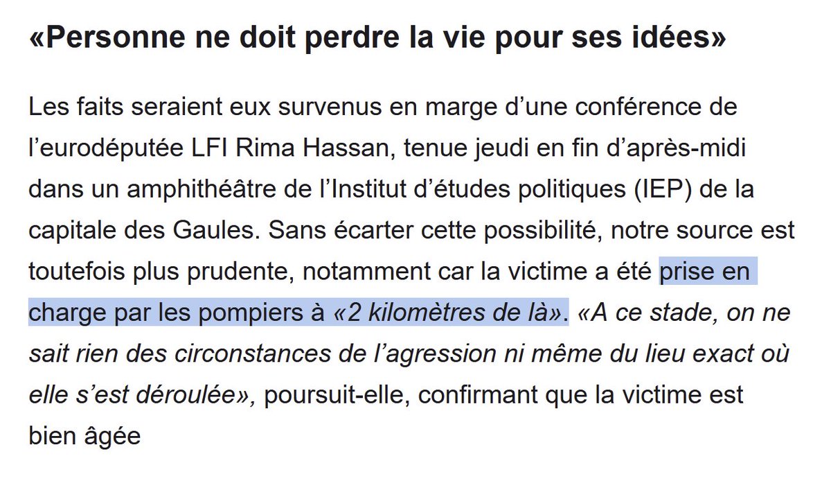 Pourquoi mentir ? Pour humaniser l'extrême droite. En réalité, les victimes, ce sont les néo-nazis qui ont débarqué dans la cité. Ils venaient juste "manifester".