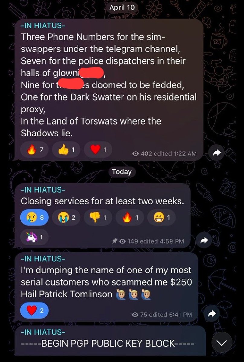 We now know how our stalkers have SWATTed us so many times. Last week, out of the blue, @VICE dropped a simply excellent piece of investigative reporting into "Torswats," a criminal who runs an automated SWATTing "service." 6/ vice.com/en/article/k7z…