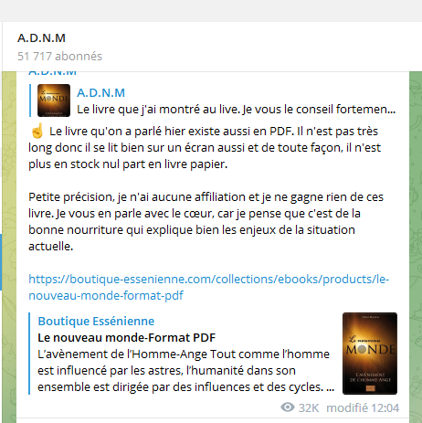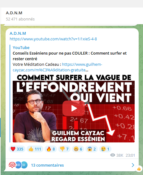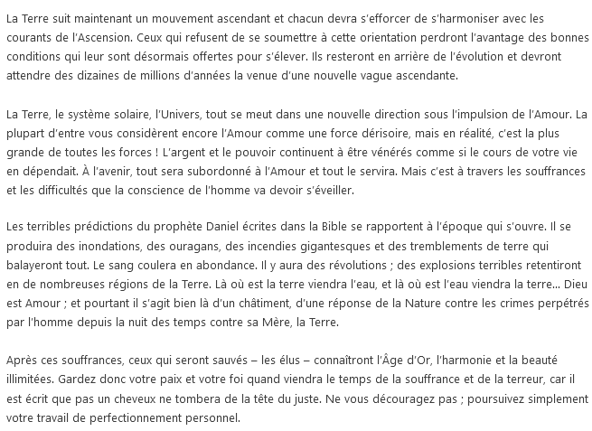 22/n : Et presque toujours en surfant sur ce narratif prédisant l’Apocalypse à venir, par discours direct ou en citant des auteurs membres de l’Eglise Essénienne…