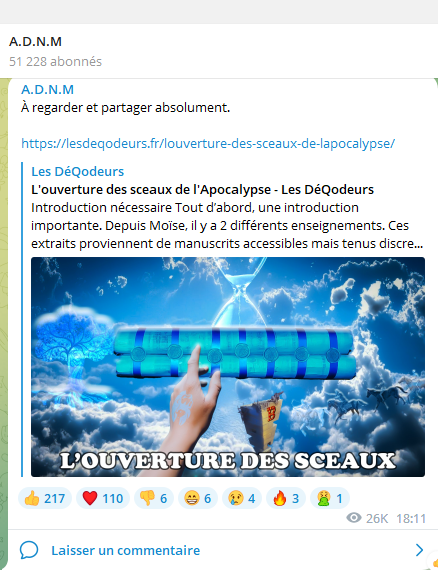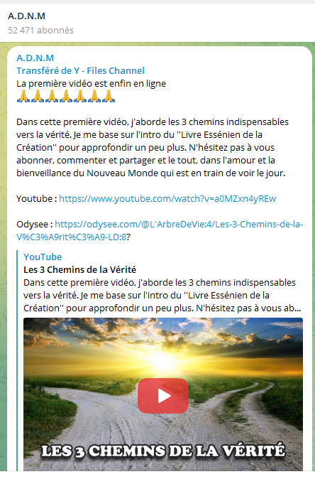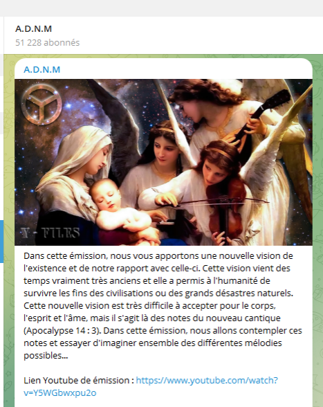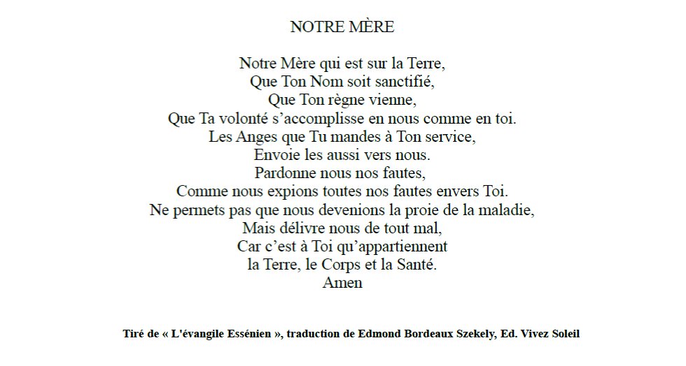 23/n : Un des signes les plus évidents a été l’apparition des prières de l’ »Evangile essénien », un «Notre Père», et surtout un «Notre Mère» apparus sur le site des DéQodeurs en 2022, bien en évidence dans le menu, et l’on trouve toujours sur le site des « A.D.N.M. »