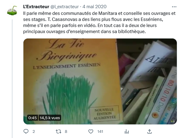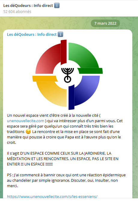 20/n : Et c’est donc par dizaines que les références aux Esséniens et à l’église qui leur est consacrée par Olivier Manitara sont apparues sur les comptes des DéQodeurs dès le début de 2022.