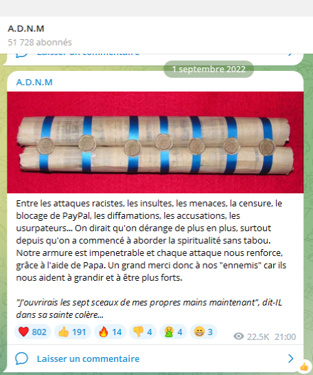 26/n : Alors : Conversion à l’Eglise essénienne, ou simple dérive mystique et occultiste ? Leur glissement vers un univers sectaire mystique ne fait que suivre celle de nombreuses anciennes composantes de la nébuleuse QAnon maintenant complétement dispersée…