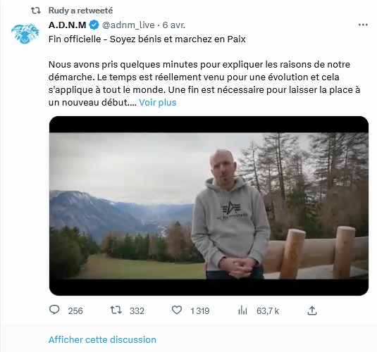 3/n : Tristan Mendès-France est le premier a avoir signalé la transformation, qui se manifeste extérieurement par un changement de nom et de @ de leurs comptes, vers un groupe spirituel en pleine dérive sectaire. Les «Ambassadeurs Du Nouveau Monde» ADNM.