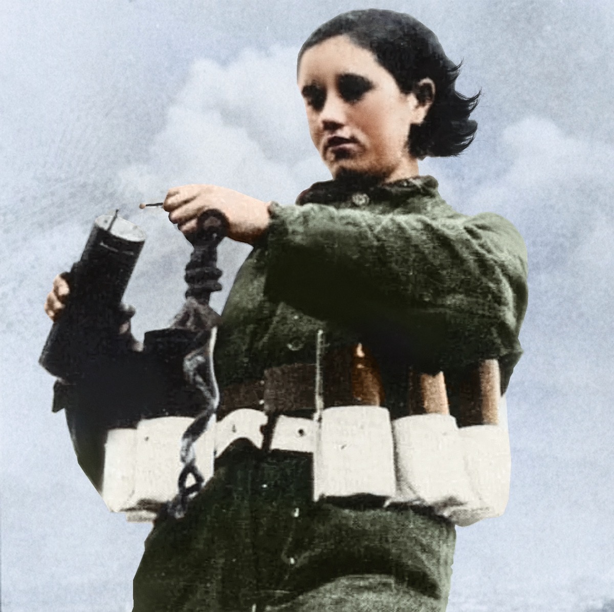 Aged only 17 years old, she joined the revolutionary militias to resist Franco’s fascist army and fought on the front lines defending Madrid. Mora was known for her mastery of explosives, which earned her the nickname ‘the Dynamiter.’