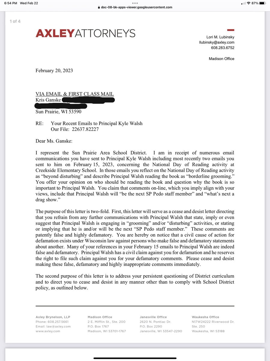 The school’s power to compel students’ presence in the classrooms, lunchrooms and hallways means that district has a heightened duty to ensure the neutrality of messages presented for students. There is nothing neutral about the messages Sheboygan Falls students are bombarded… twitter.com/i/web/status/1…