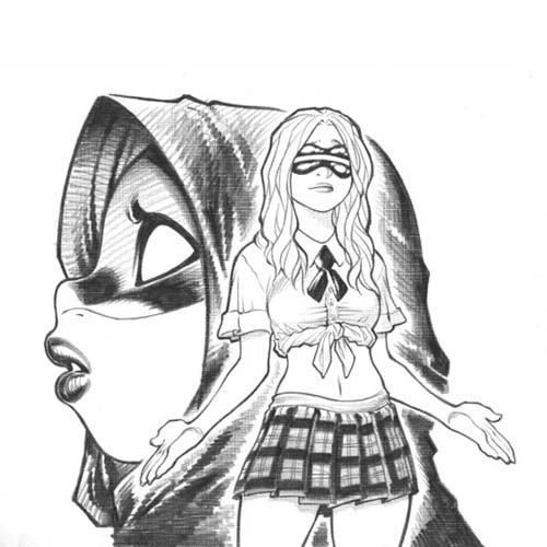 Ninjette, Emp's best friend, is a heavily traumatized alcoholic kunoichi who started out as a villain of Empowered's from a horribly fucked up ninja clan.