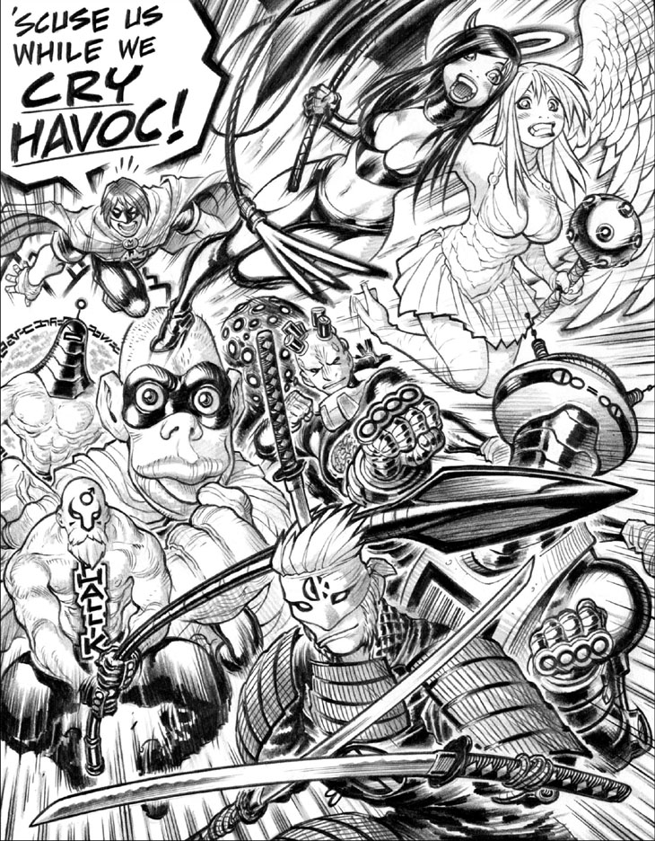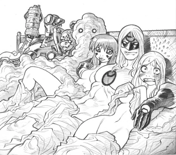 I was also wrong about Emp, SS and MF being the only girls on the team. There's Divangelic, conjoined twins with demon/angel powers, as well.